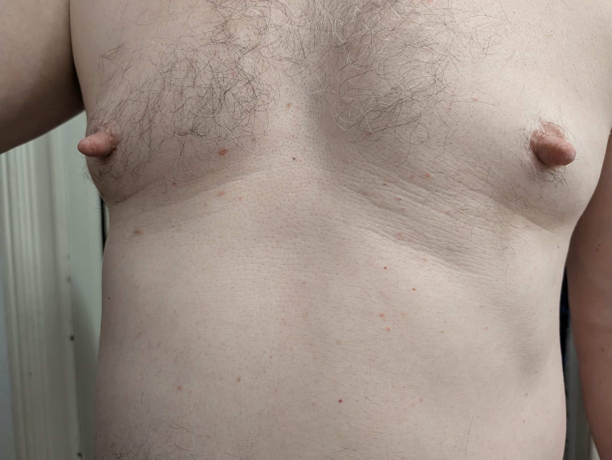 Meine Maße: 1,83 m, 97 kg, Schwanz 17 x 5 cm, auf Wunsch meiner Herrin würde ich ein Potenzmittel einnehmen. Meine Brustwarzen habe ich mir durch systematisches Quetschen und Ziehen zu langen, fleischigen Nippeln gemacht, siehe Foto.